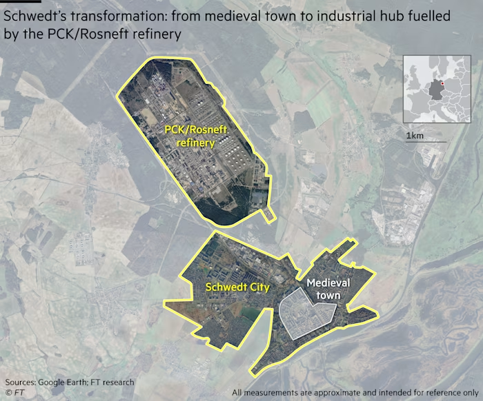 In a sprawl of concrete 100km north of Berlin, a Soviet-era refinery has become a hostage to Europe’s tangled geopolitics: Russia owns it, Germany runs it and US sanctions could soon shut it down — risking a fuel chokehold on the German capital.